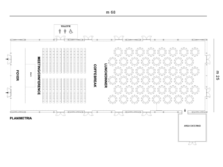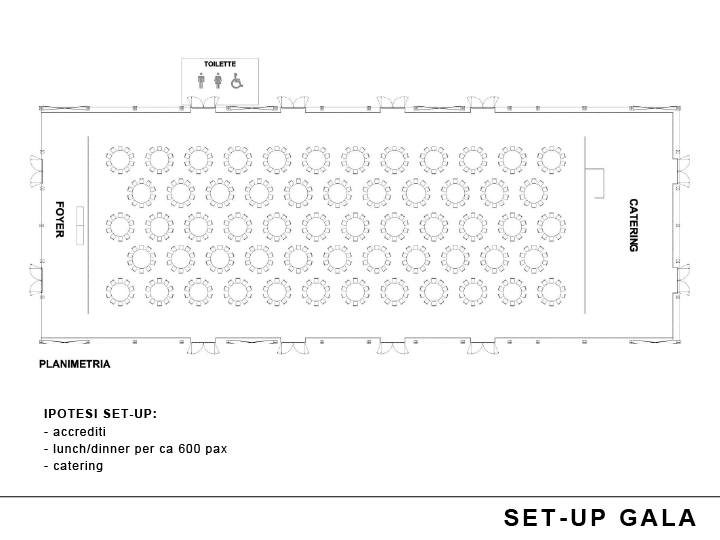 Uno spazio eventi perfetta per gala, conference e fashion show grazie alla imponente struttura ad arco con fronte libero che si adatta perfettamente alla realizzazione di sfilate e concerti.